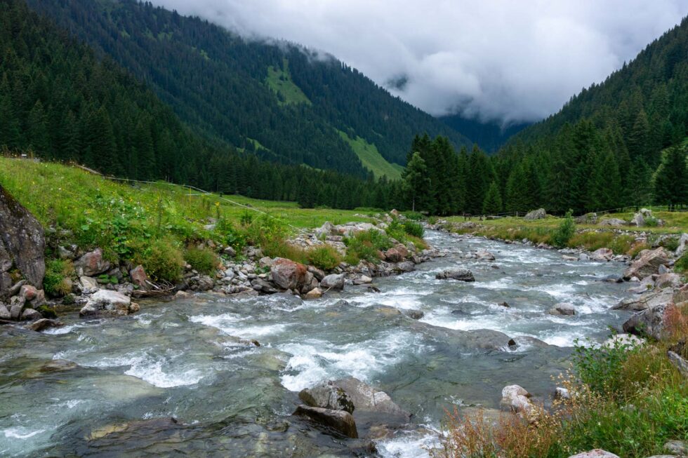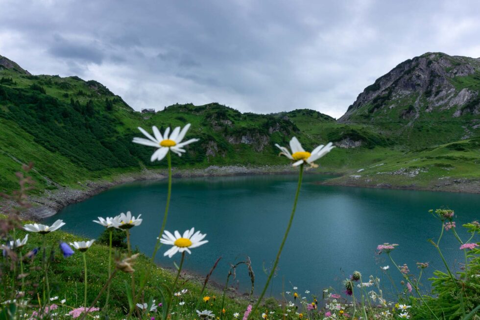 Der Regen macht die Kalksteine schmierig und unsere Abfahrt vom Schrofenpass geht dementsprechend langsam voran. In Lech legen wir uns bei Pizza und Apfelschorle trocken und radeln dann über Zug und den Formarinsee zur Freiburger Hütte. Wir sind jetzt in Vorarlberg im Lechquellgebirge und verbringen die Nacht in Dalaas am Arlberg.